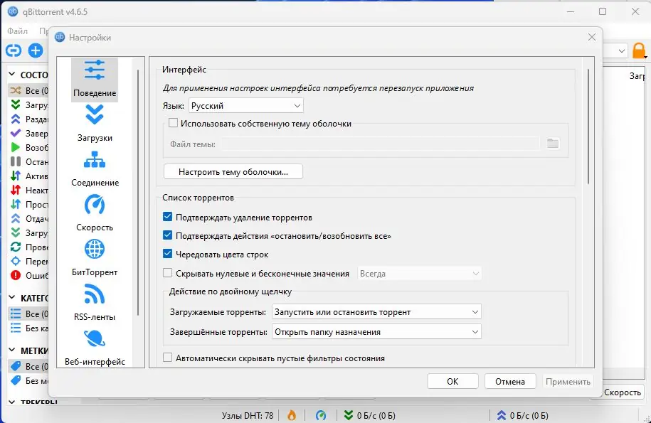 Работа с qBittorrent