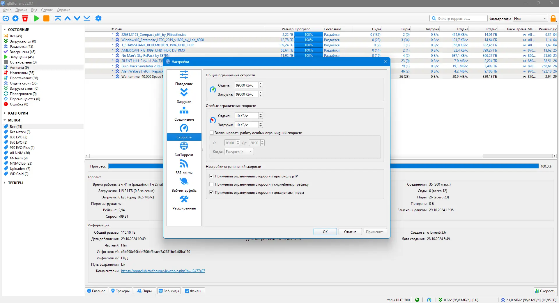 Использование qBittorrent не требует глубоких технических знаний. После запуска приложение отображает список активных загрузок, статистику скорости и информацию о подключённых пирах. Добавление новых торрентов осуществляется через кнопку «Добавить», после чего пользователь может выбрать нужные файлы и задать приоритеты. В настройках доступно управление скоростью закачки и отдачи, а также возможность ограничить использование трафика в определённое время суток. Для тех, кто хочет управлять клиентом удалённо, настраивается веб-интерфейс, доступ к которому можно получить через любой браузер. Это особенно удобно, если программа запущена на домашнем сервере или компьютере, к которому нет прямого доступа. Также поддерживается автоматическое выключение компьютера по завершении всех задач, что экономит энергию и освобождает ресурсы.