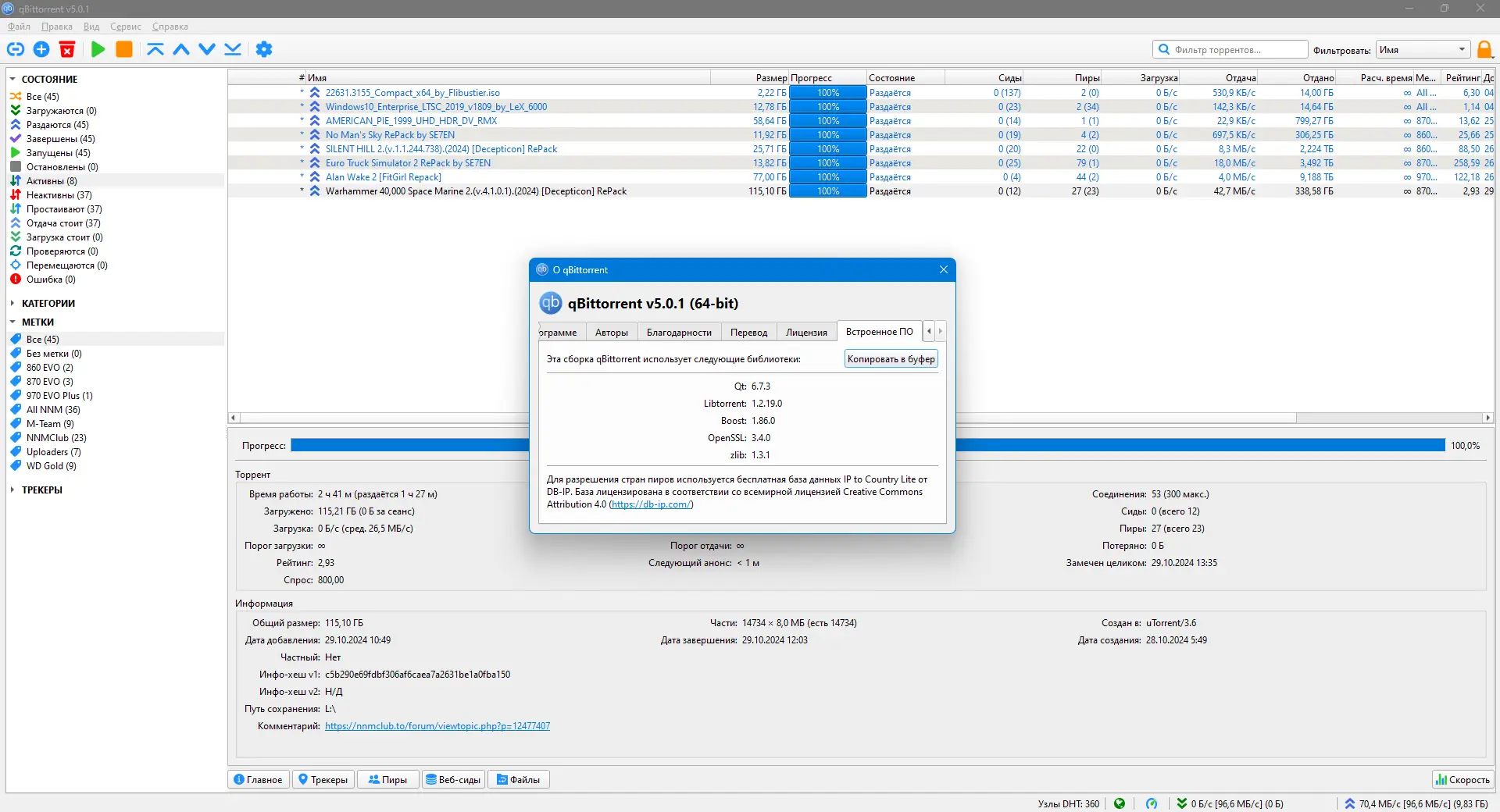 qBittorrent представляет собой современное приложение для работы с торрент-файлами, разработанное как альтернатива коммерческим клиентам. Оно написано на C++ с использованием библиотеки libtorrent-rasterbar, а графическая оболочка реализована на фреймворке Qt, что обеспечивает высокую производительность и кроссплатформенность. Программа активно развивается, регулярно получает обновления и поддерживается сообществом разработчиков.