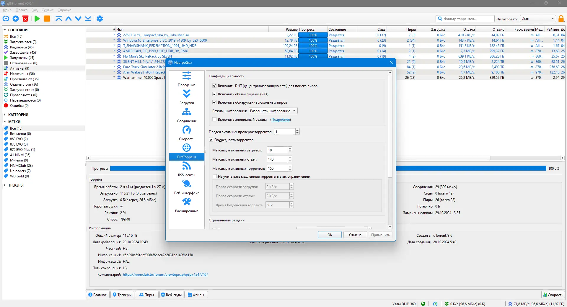 Работа с qBittorrent