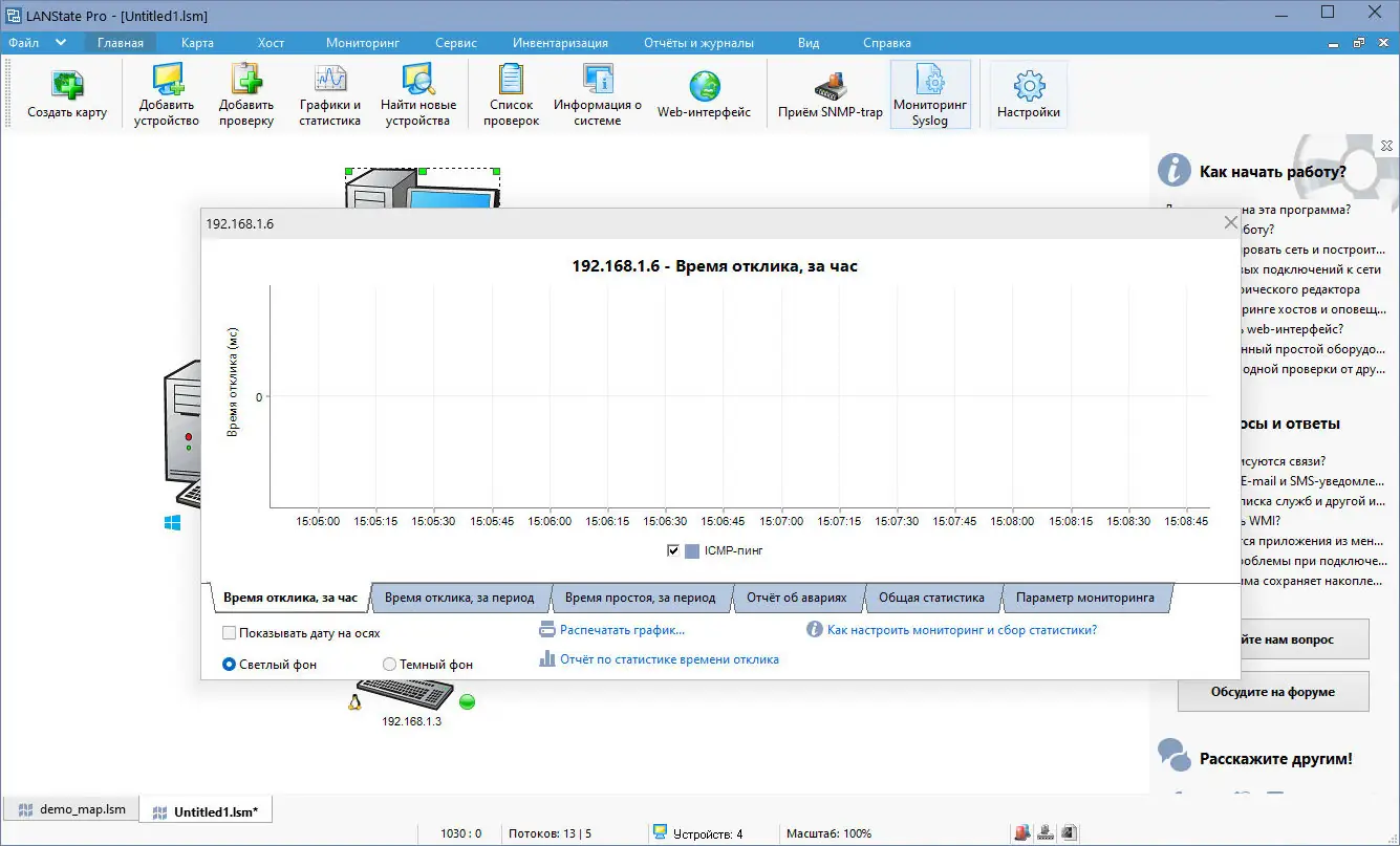 - Мониторинг доступности компьютеров, серверов и сетевого оборудования в режиме реального времени.