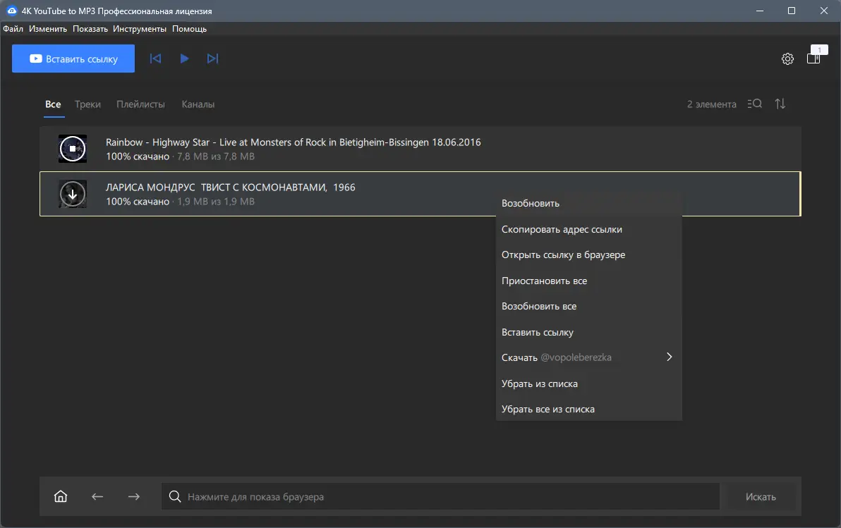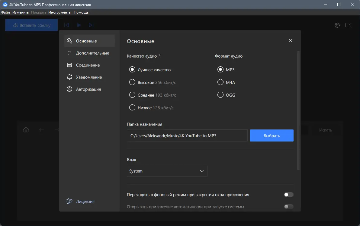 - Извлечение аудио из видео с YouTube и других ресурсов в форматах MP3, M4A, OGG