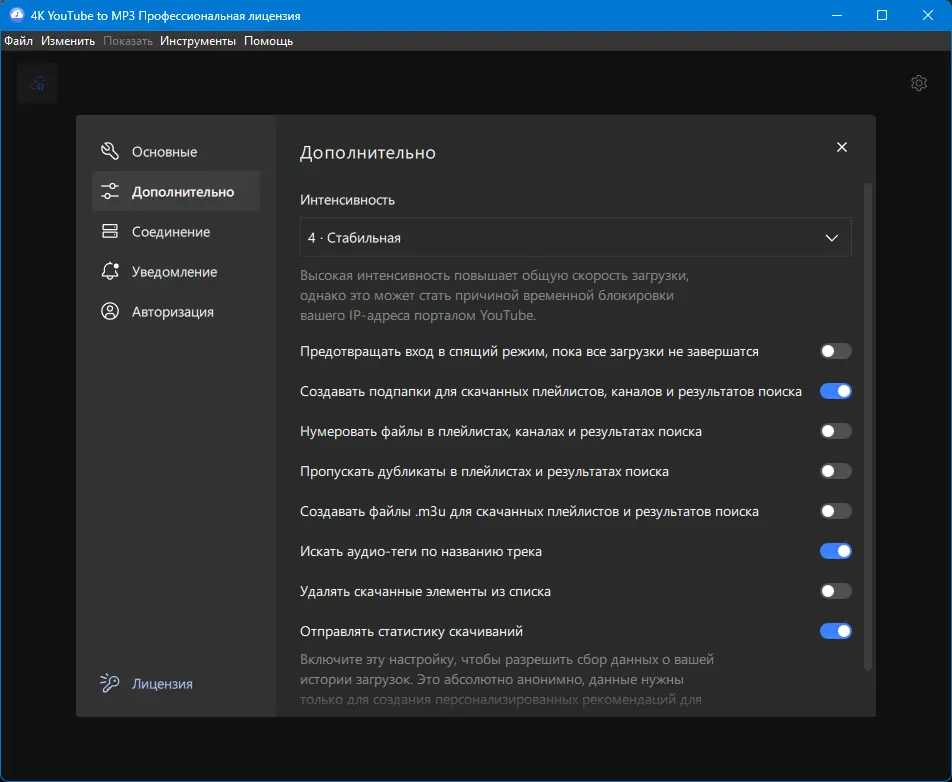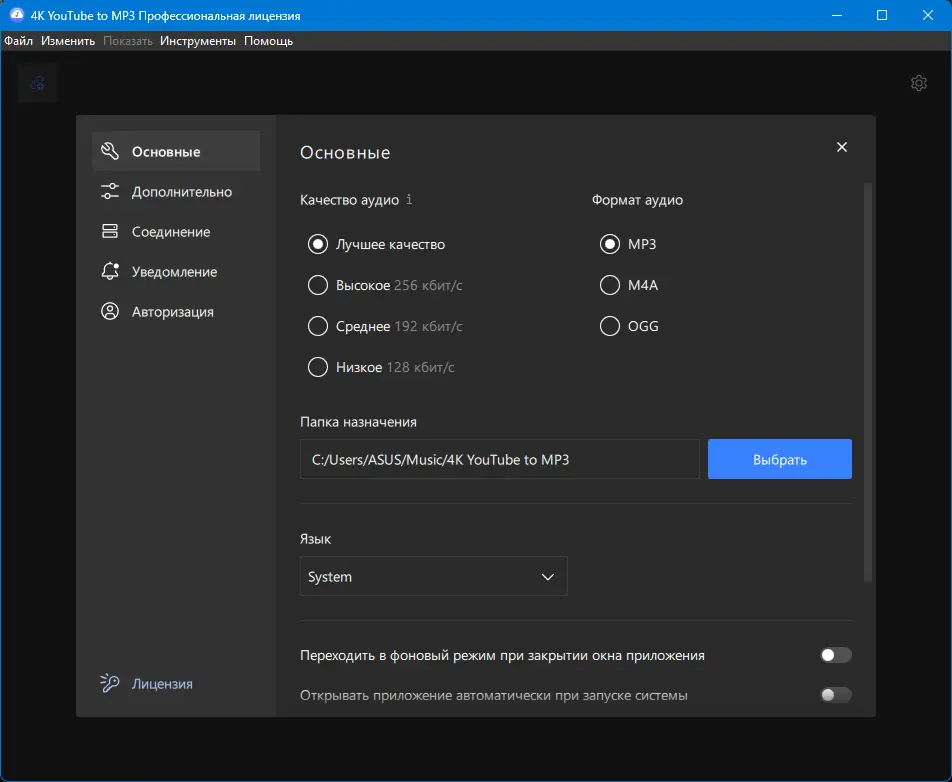 Работа с 4K YouTube to MP3