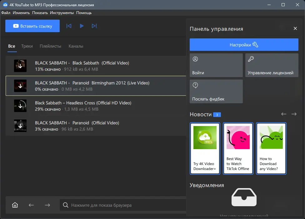 Работа с 4K YouTube to MP3