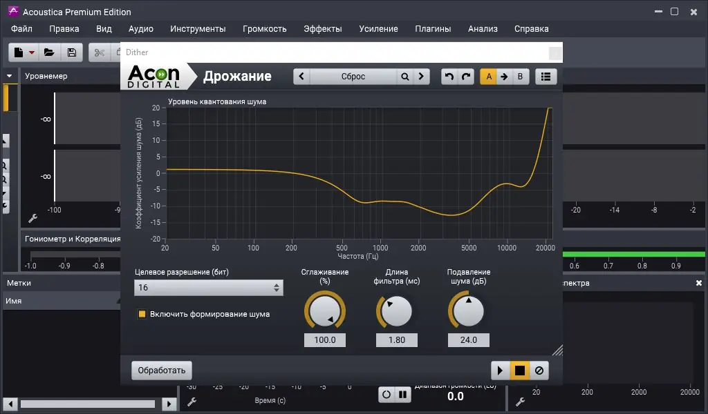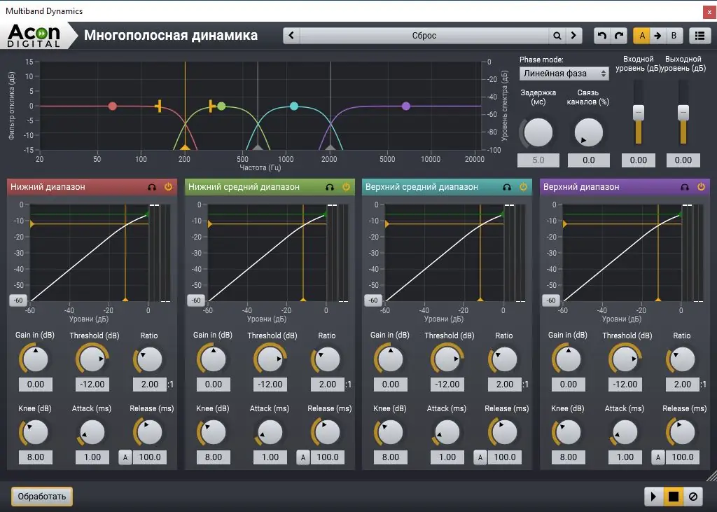 - Поддержка реального времени эффектов, спектрального анализа, визуализации и кривых громкости.