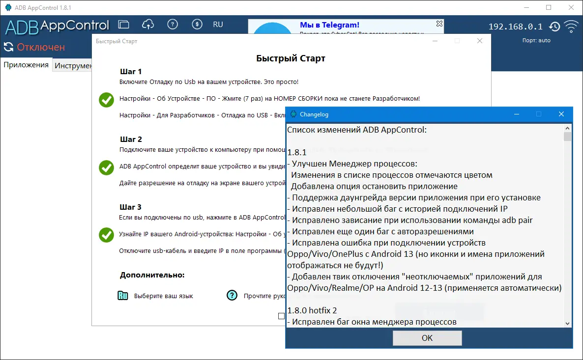Работа с ADB AppControl