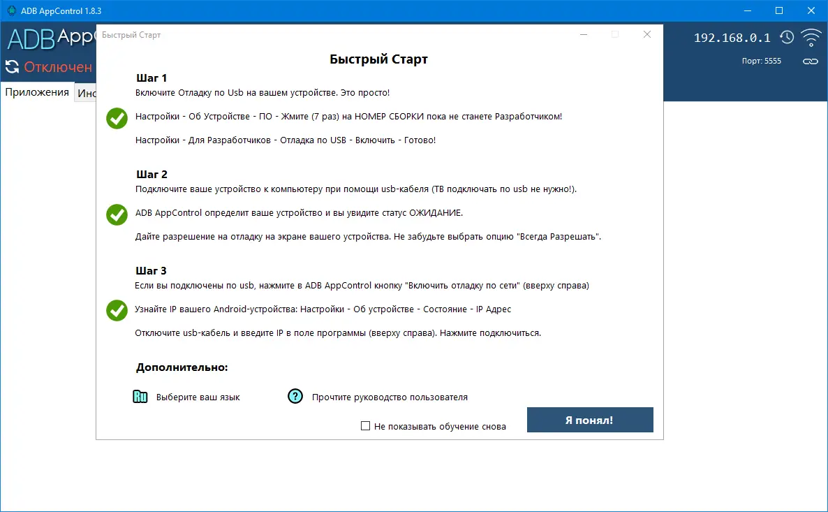 Работа с ADB AppControl