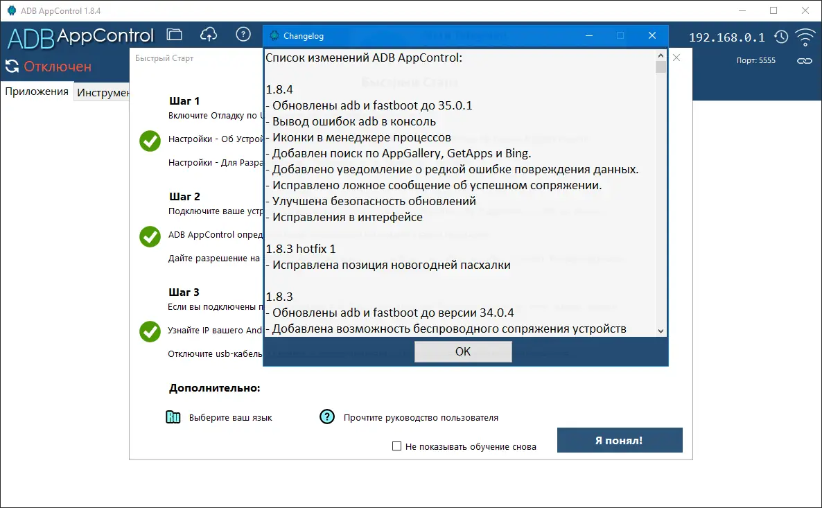 Программа регулярно обновляется, и текущая версия включает улучшения безопасности, обновлённые компоненты adb и fastboot версии 35.0.1, а также расширенный поиск по AppGallery, GetApps и Bing. Появилась возможность просматривать ошибки ADB в консоли, улучшена работа с интерфейсом и устранены ложные уведомления. Для пользователей, ищущих ключ к расширенным возможностям, достаточно следовать инструкциям на официальном сайте. Обновление 1.8.4 принесло не только исправления, но и новые функции, такие как иконки в менеджере процессов и уведомления о повреждении данных. Скачать приложение можно на странице разработчика, где также доступно руководство пользователя. Версия 1.8 6 доступна для тестирования через специальный канал. Все функции работают стабильно на устройствах с Android 7.0 и выше.