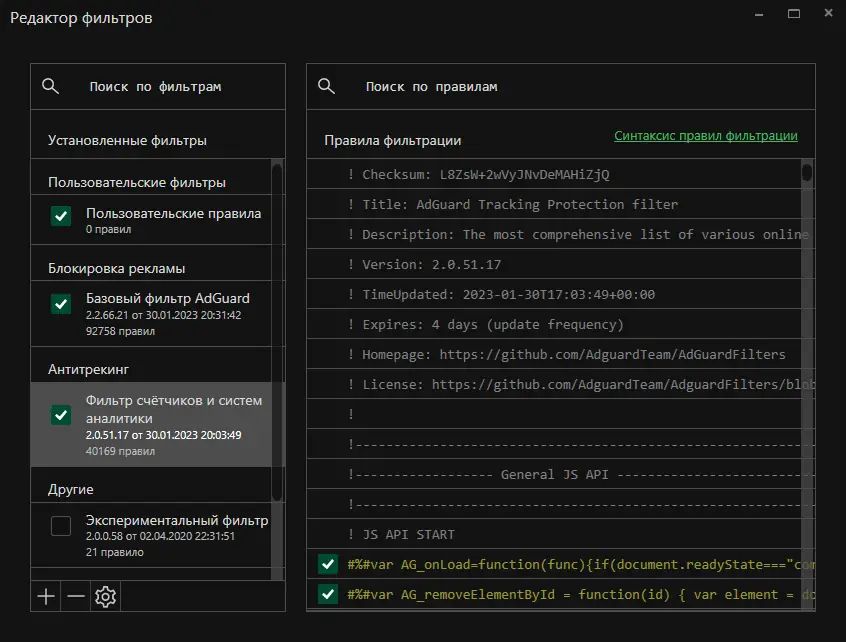 - Поддержка расширения для браузеров и настройка правил фильтрации