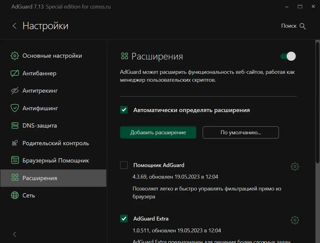 Adguard работает на уровне операционной системы, перехватывая и анализируя сетевой трафик до его отображения в браузере.