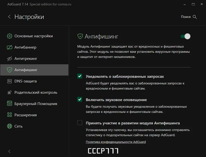 Adguard представляет собой комплексное решение для обеспечения безопасности в интернете, сочетающее функции антивирусной утилиты, блокировщика рекламы и инструмента приватности. Программа анализирует сетевой трафик в режиме реального времени, предотвращая доступ к мошенническим и заражённым ресурсам. Благодаря интеграции с базами Google Safe Browsing, Web of Trust и Malwaredomains, фильтрация остаётся актуальной и эффективной ежедневно.