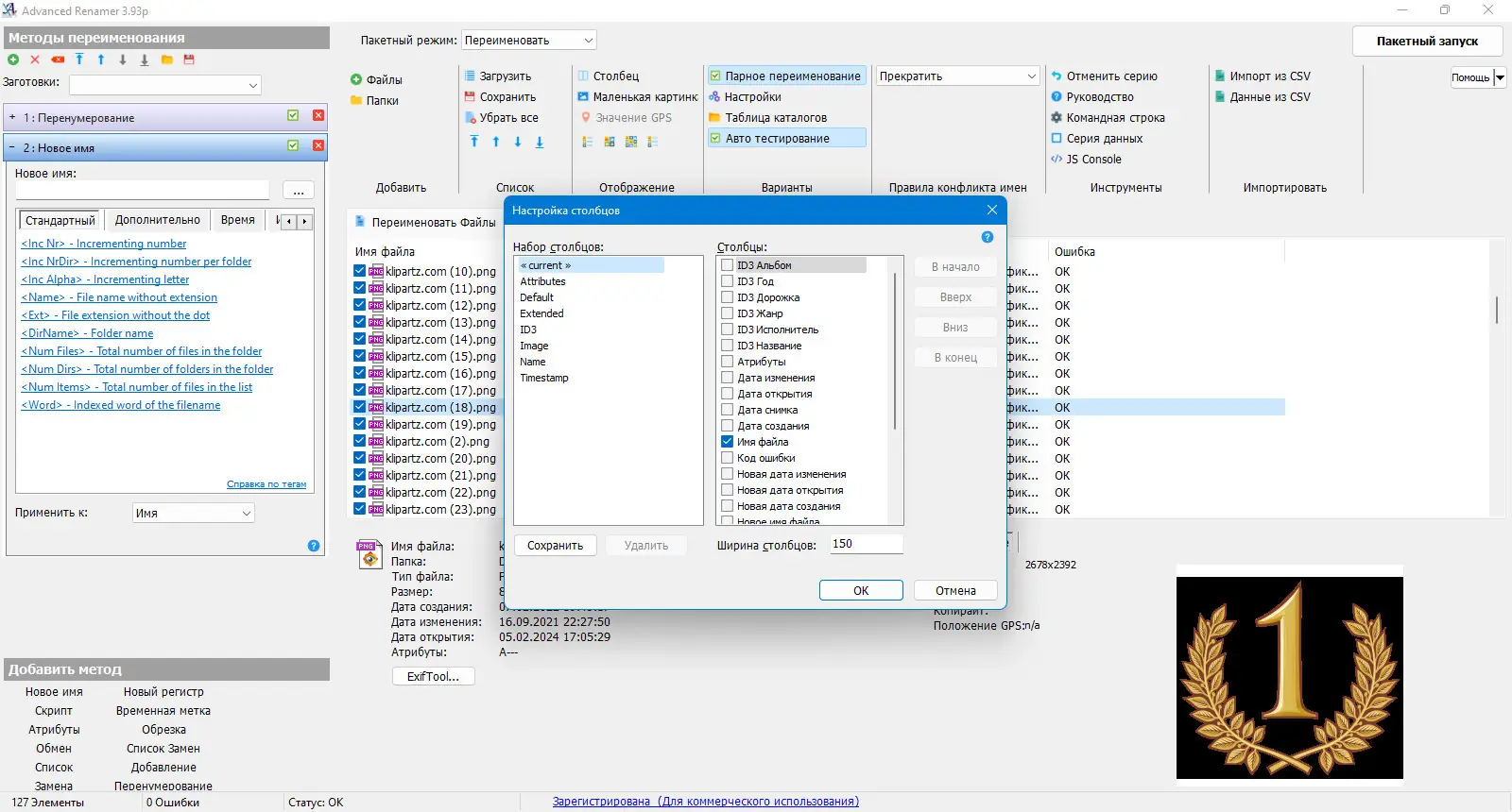 Advanced Renamer — это мощная утилита для массового переименования файлов и папок в системе Windows, позволяющая автоматизировать процесс сортировки и организации данных. Программа поддерживает множество методов изменения имён, включая работу с тегами, метаданными и системными атрибутами, что делает её незаменимой при обработке больших объёмов файлов. С её помощью можно легко переименовывать музыкальные треки по ID3-тегам, изображения — на основе EXIF-данных, а также применять сложные правила переименования с предварительным просмотром результатов. Утилита совместима с последними версиями операционных систем и предлагает гибкие настройки для профессионального использования. Поддержка пакетных операций, копирование и перемещение файлов по заданным шаблонам расширяют функциональные возможности инструмента. Программа бесплатна, но требует дополнительных действий для активации полного функционала.
