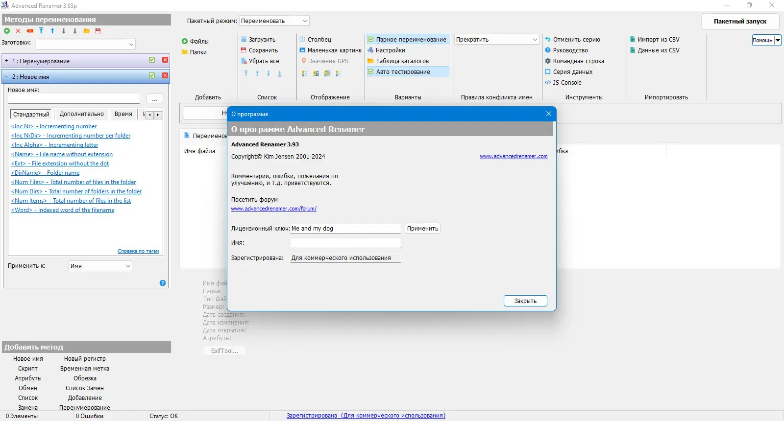 Как пользоваться программой — вопрос, который часто возникает у новичков, но интерфейс утилиты интуитивно понятен после первых шагов. Для начала нужно добавить файлы или папки в рабочую область, после чего выбрать один или несколько методов переименования из доступного списка. Каждый метод можно настроить отдельно: например, включить автоматическую нумерацию, заменить определённые символы или извлечь данные из тегов. После настройки отображается предварительный результат, позволяющий оценить итоговый вид имён. Перед запуском процесса рекомендуется проверить корректность шаблонов, особенно при работе с важными файлами. Для расширенных задач доступен режим редактирования с использованием JavaScript, что даёт максимальный контроль над преобразованиями. Регистрация осуществляется через копирование лицензионного файла в нужную директорию, что активирует все функции без ограничений.