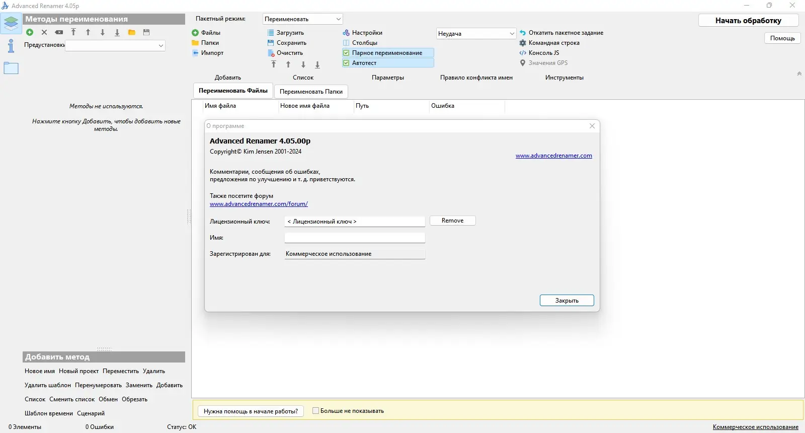 Advanced Renamer — мощная утилита для массового переименования файлов и папок в операционной системе Windows, позволяющая быстро систематизировать данные с помощью гибких настроек и множества методов обработки. Программа поддерживает работу с тегами, метаданными мультимедиа, атрибутами файлов и предлагает инструменты для автоматизации рутинных операций. Её функционал охватывает не только изменение имён, но и копирование, перемещение, а также настройку временных меток.