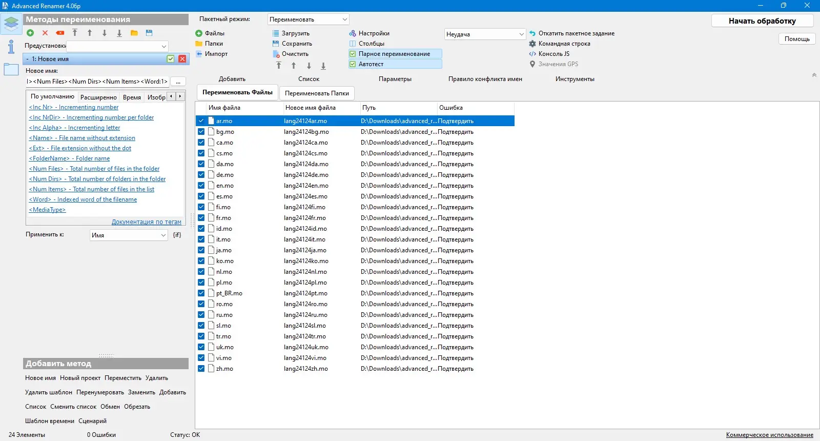 Программа выделяется на фоне аналогов продуманным функционалом и высокой степенью кастомизации. Поддержка различных форматов метаданных, пакетная обработка, а также возможность использовать комбинации методов делают её незаменимой при работе с большими объёмами информации. Интерфейс интуитивно понятен, а режим предпросмотра минимизирует риск потери данных. В то же время, отсутствие официальной локализации на русском языке может вызвать сложности у новичков, хотя сообщество предоставляет пользовательские переводы, включая файл ru.mo. Также стоит отметить, что некоторые расширенные функции требуют времени для изучения, особенно при использовании сложных шаблонов.