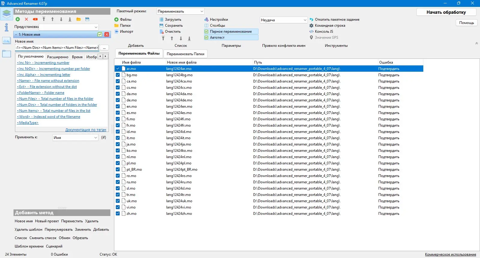 - Поддержка множества методов переименования, включая сложные комбинации правил.