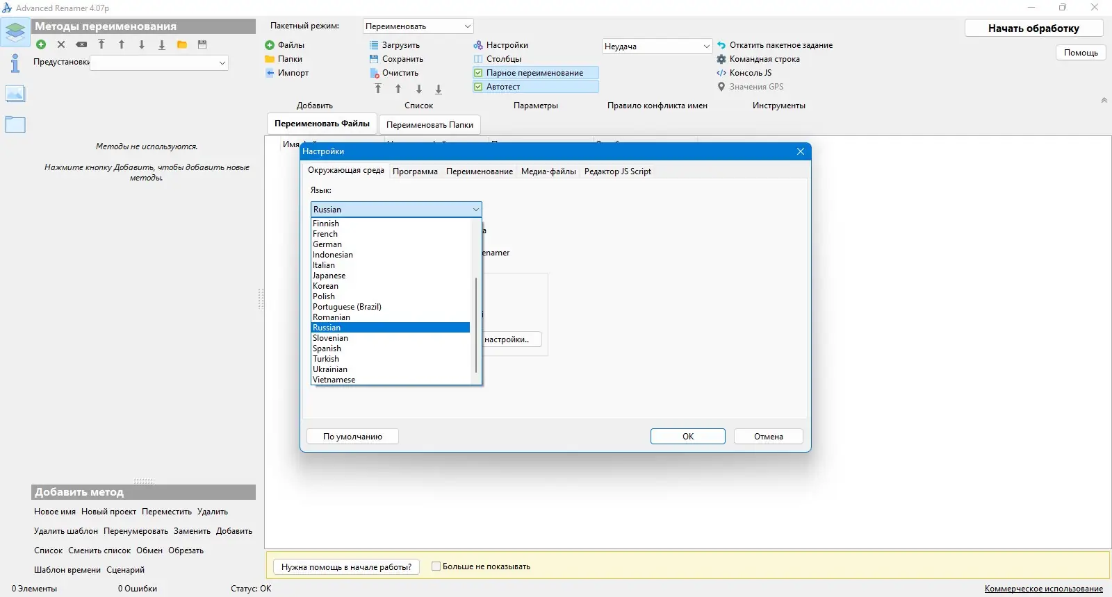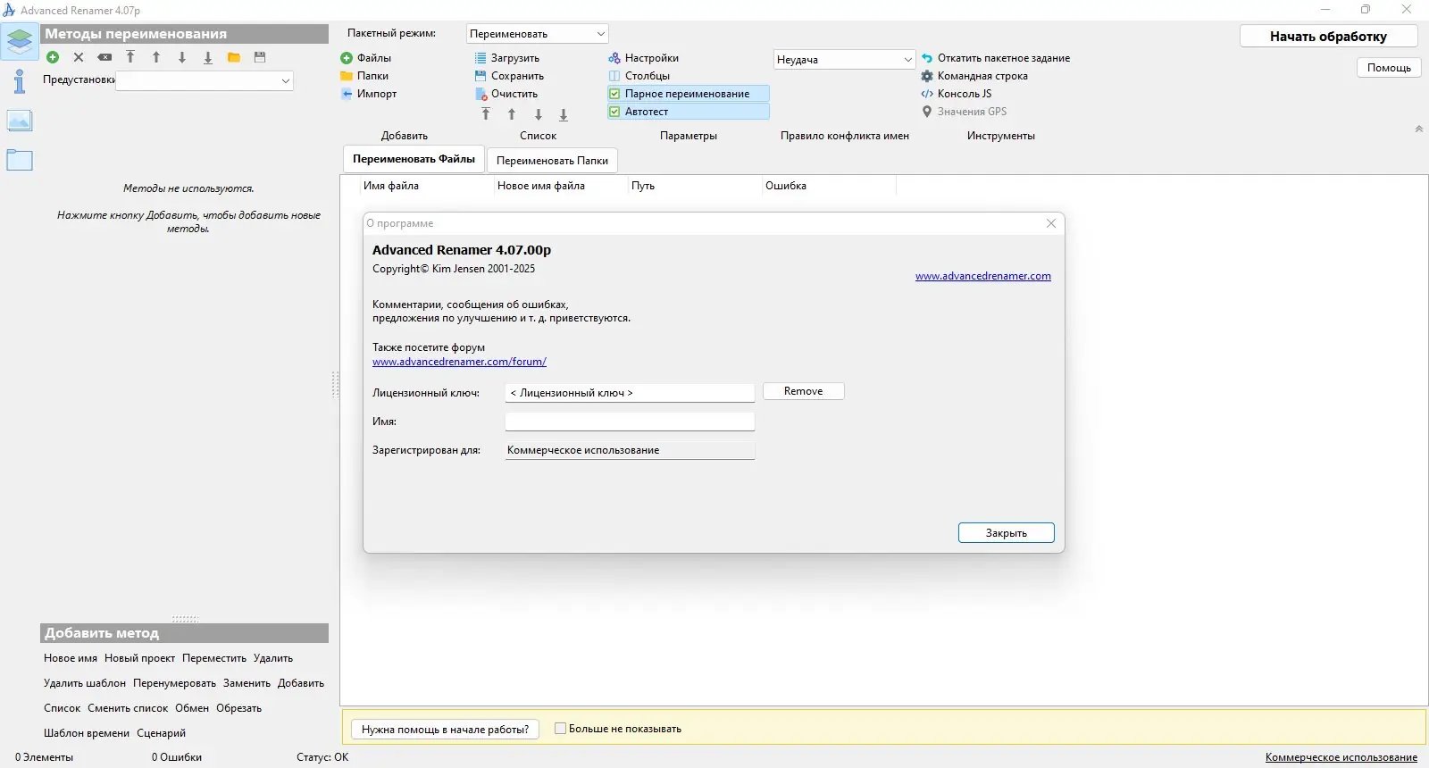 Как пользоваться программой — вопрос, который возникает у новичков, но интерфейс построен интуитивно. После запуска достаточно добавить файлы или папки в рабочую область, затем выбрать один или несколько методов переименования. Каждый метод можно настроить отдельно: указать вставку текста, замену символов, изменение регистра, использование даты или тегов. Режим предварительного просмотра показывает, как будут выглядеть имена после обработки, что исключает ошибки. После проверки настроек применяются изменения, а при необходимости их можно отменить. Поддержка нескольких методов в одном задании позволяет комбинировать операции и достигать сложных результатов без дополнительных инструментов.