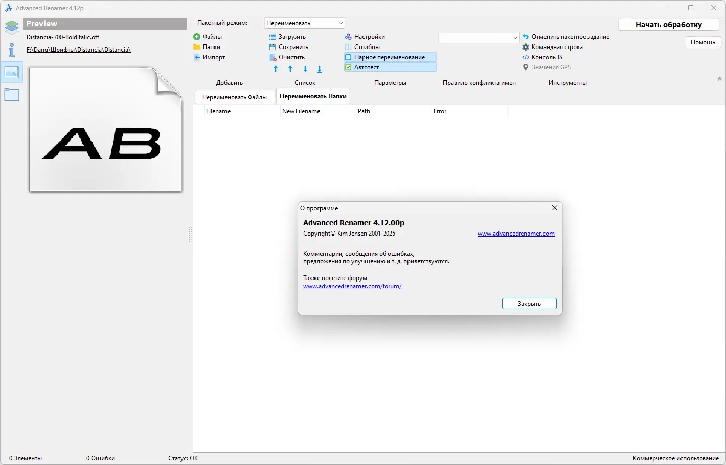 Описание Advanced Renamer