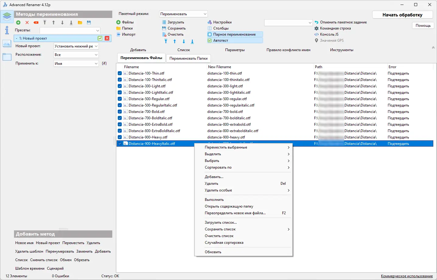 Работа с программой начинается с добавления файлов или папок в основное окно, после чего пользователь выбирает один или несколько методов переименования. Каждый метод можно настроить с помощью параметров, таких как префикс, суффикс, замена текста, регистр символов или математические операции с числами. После настройки всех правил система отображает итоговые имена в отдельной колонке, что позволяет убедиться в корректности изменений. Поддержка drag-and-drop упрощает загрузку файлов, а встроенные шаблоны ускоряют процесс настройки для типовых задач.