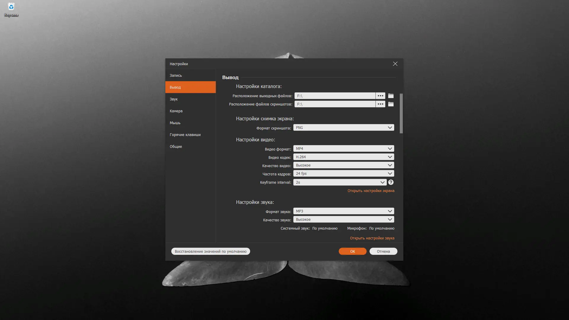- Гибкие параметры настройки: частота кадров, видеокодек, горячие клавиши