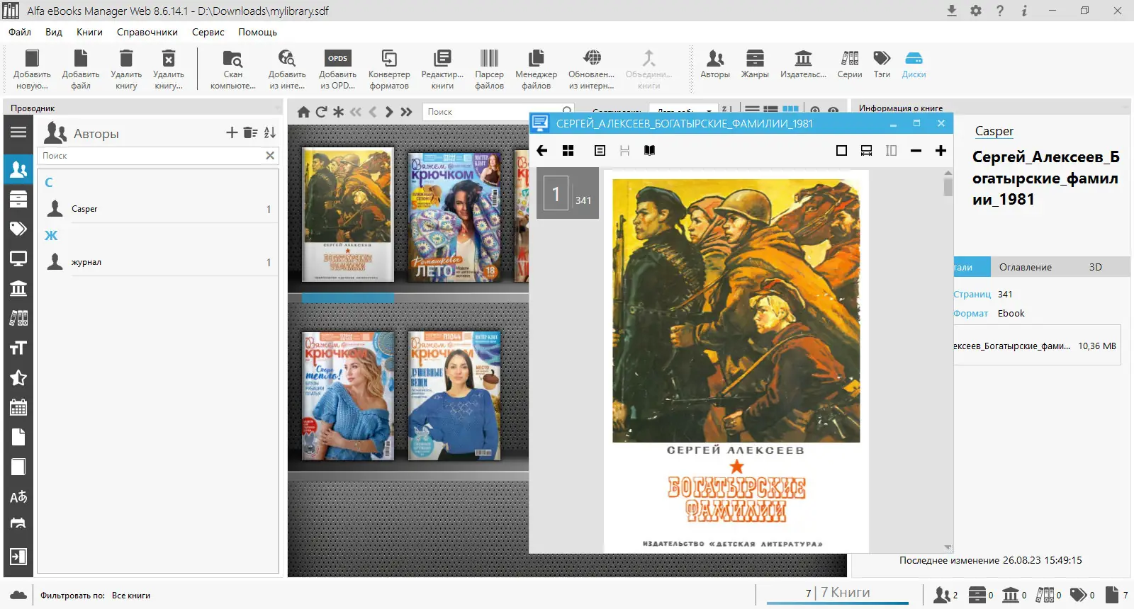 - Поддержка тысяч книг в одной базе с возможностью создания нескольких библиотек
