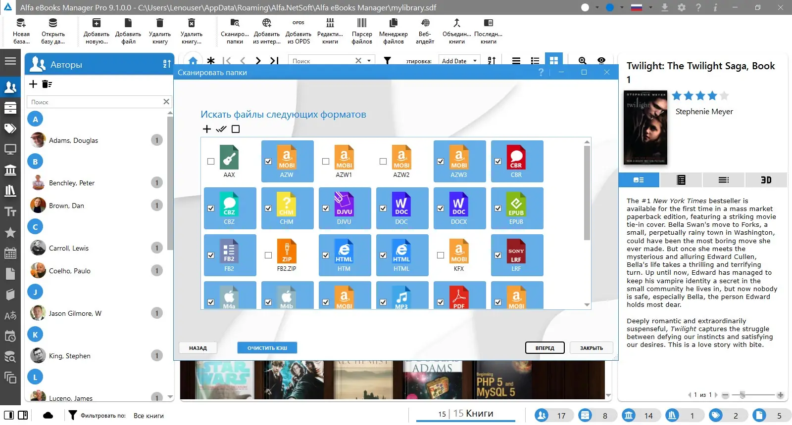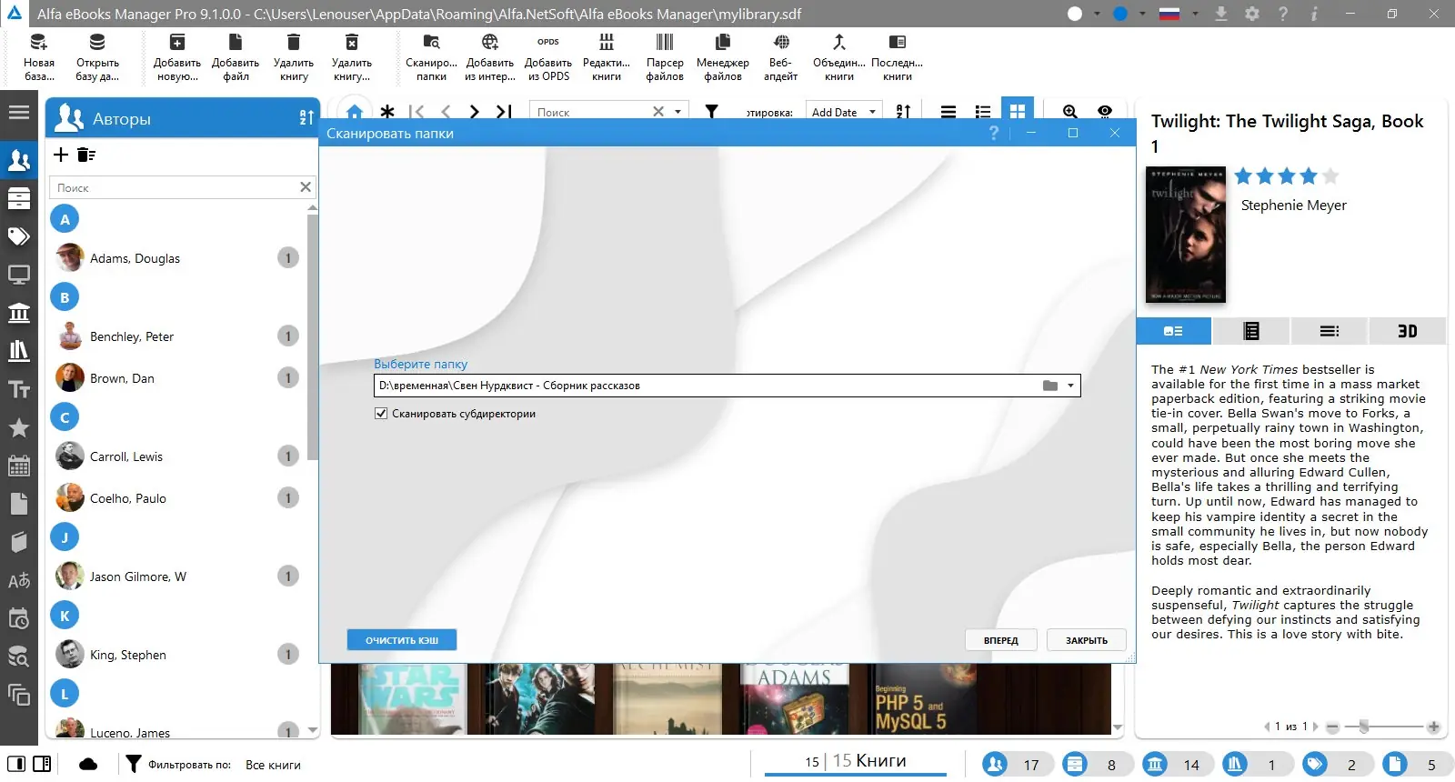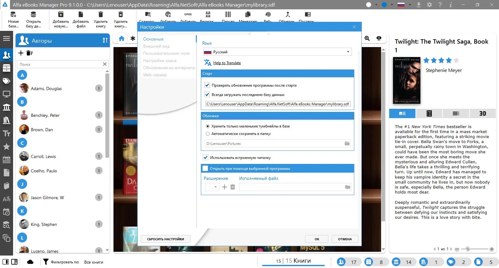 Alfa eBooks Manager — это мощный каталогизатор, предназначенный для управления личной библиотекой любого масштаба. Он поддерживает как электронные, так и физические издания, позволяя хранить подробную информацию о каждой книге. Программа автоматически распознаёт метаданные, извлекает обложки и организует контент по авторам, жанрам и тегам. Это упрощает поиск, сортировку и доступ к нужным материалам.