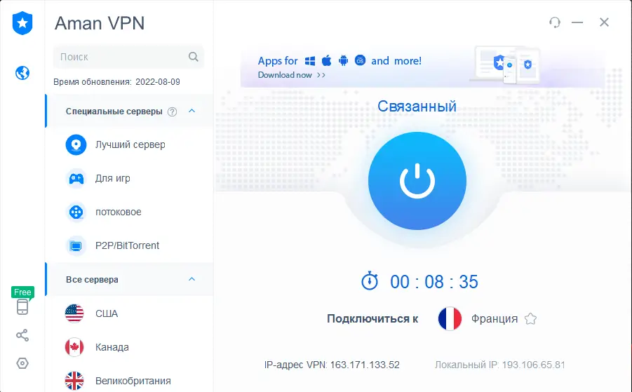 AmanVPN — это надежное программное обеспечение для обеспечения безопасности в сети, обхода географических ограничений и шифрования интернет-трафика. Приложение предоставляет стабильный доступ к заблокированным ресурсам и защищает данные пользователя при подключении к открытым Wi-Fi сетям.