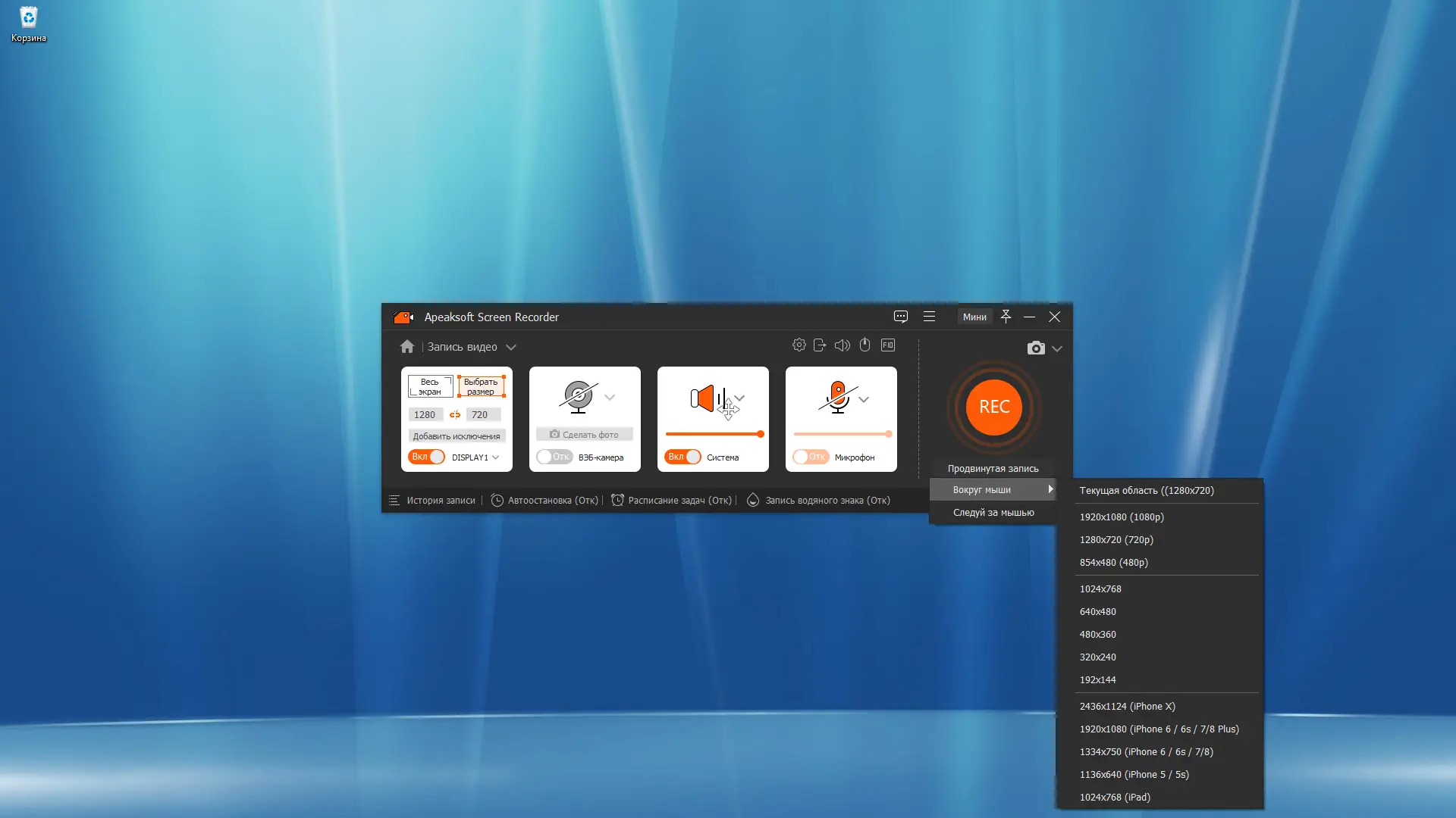 Работа с Apeaksoft Screen Recorder