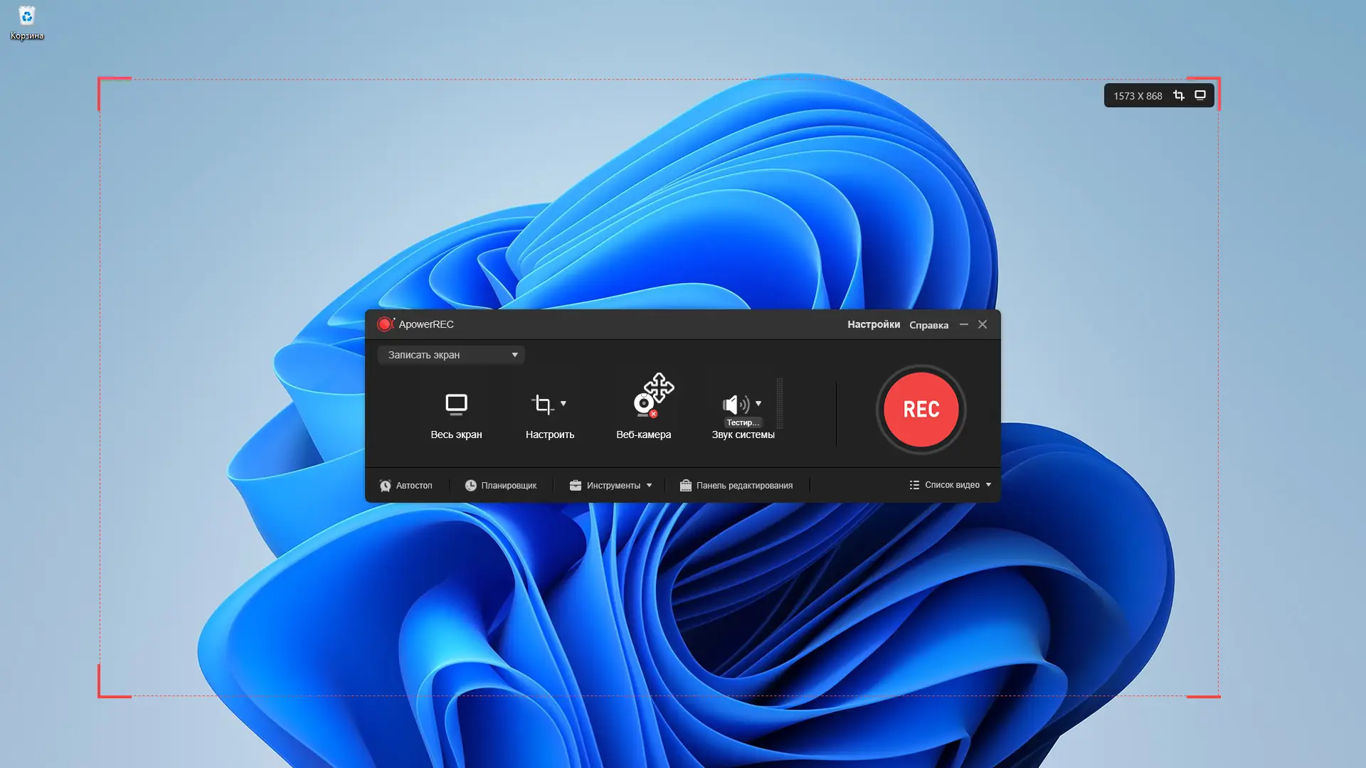 ApowerREC — это инструмент для записи экрана с продуманным интерфейсом и широким набором функций. Программа предназначена для пользователей, которым нужно фиксировать происходящее на мониторе с высоким качеством и минимальными задержками. Она поддерживает различные режимы захвата: полный экран, определённая область, отдельное окно. Это делает её универсальной для разных задач — от записи игровых процессов до подготовки презентаций.
