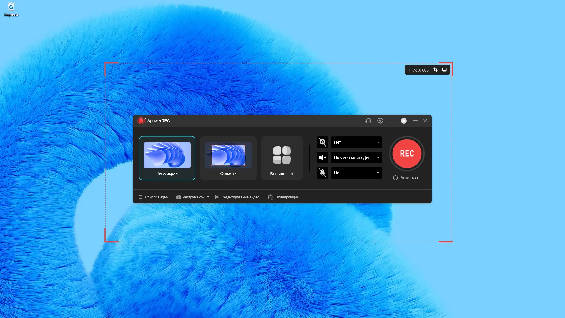 ApowerREC — это программа для записи экрана, позволяющая фиксировать действия на рабочем столе, трансляции, веб-встречи и видеочаты с одновременной поддержкой аудио и веб-камеры. Инструмент обеспечивает высокое качество записи, гибкие настройки вывода и встроенные функции редактирования, что делает его универсальным решением для создания обучающих материалов, демонстраций и сохранения онлайн-событий.