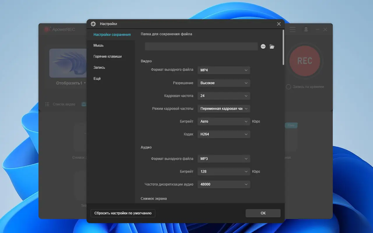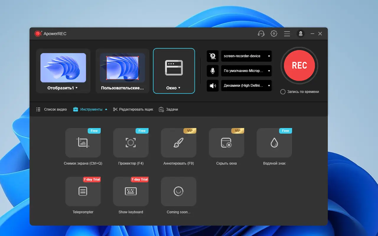 Работа с ApowerREC
