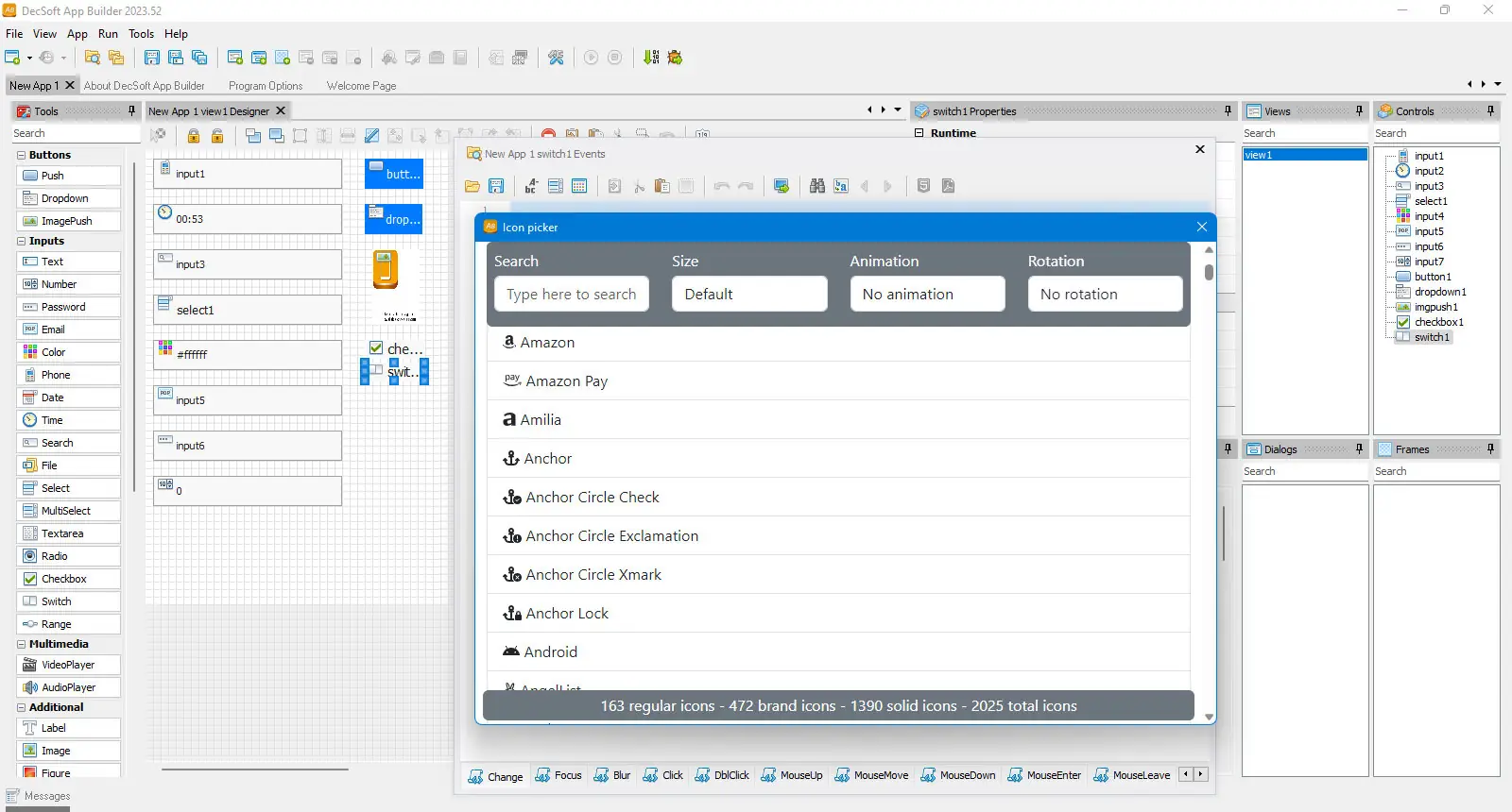 - Визуальный конструктор предоставляет доступ к обширной библиотеке компонентов, включая кнопки, поля ввода, анимации и другие интерактивные элементы.