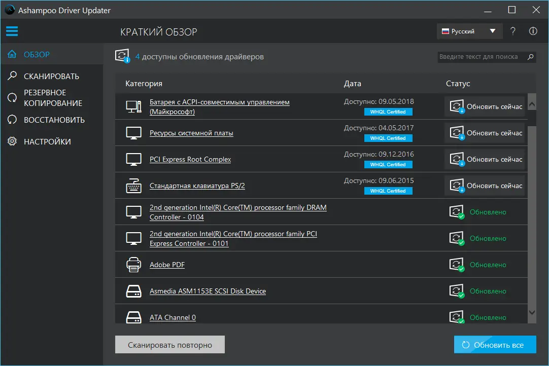 Описание Ashampoo Driver Updater
