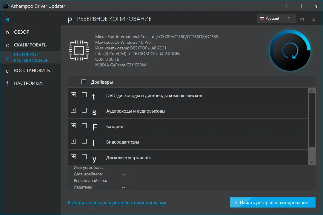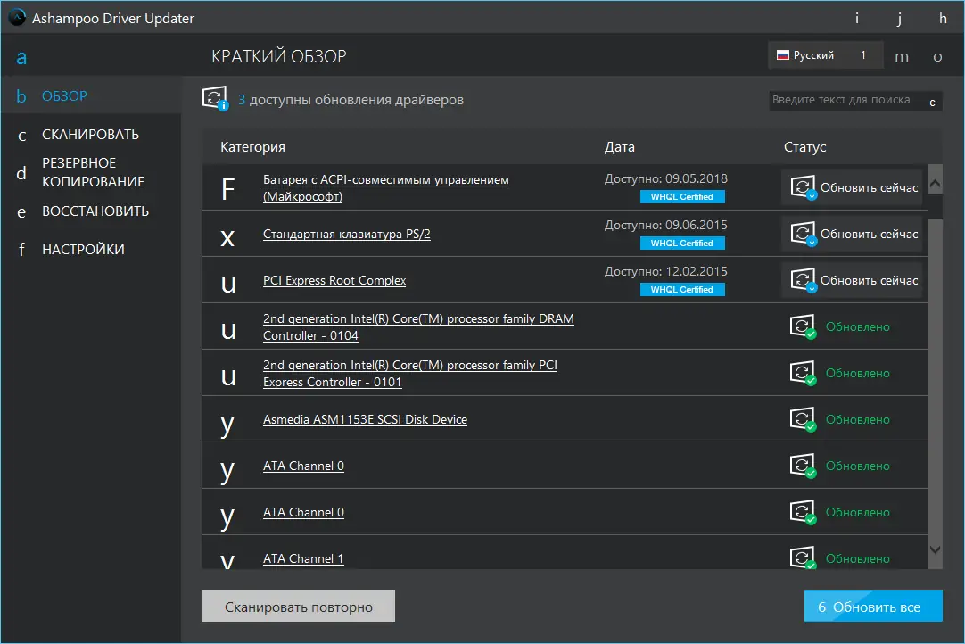 Работа с Ashampoo Driver Updater