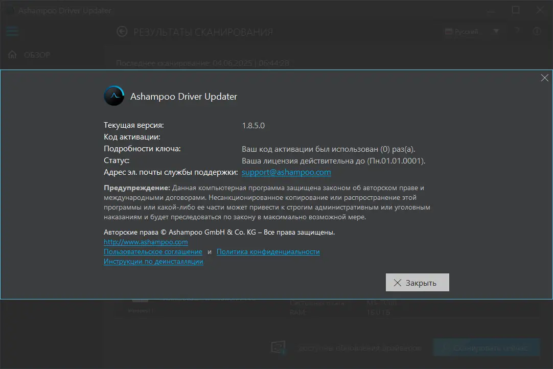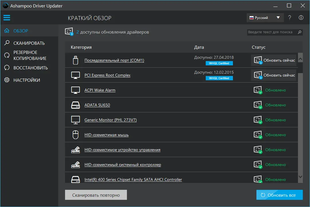 Работа с Ashampoo Driver Updater