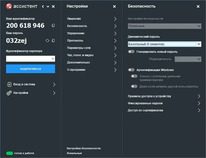 Ассистент — это программное обеспечение российской разработки, предназначенное для безопасного удаленного доступа к компьютерам через локальную сеть или интернет. Программа сочетает в себе высокий уровень защиты, удобство управления и широкий функционал, подходящий как для корпоративного использования, так и для технической поддержки отдельных пользователей.