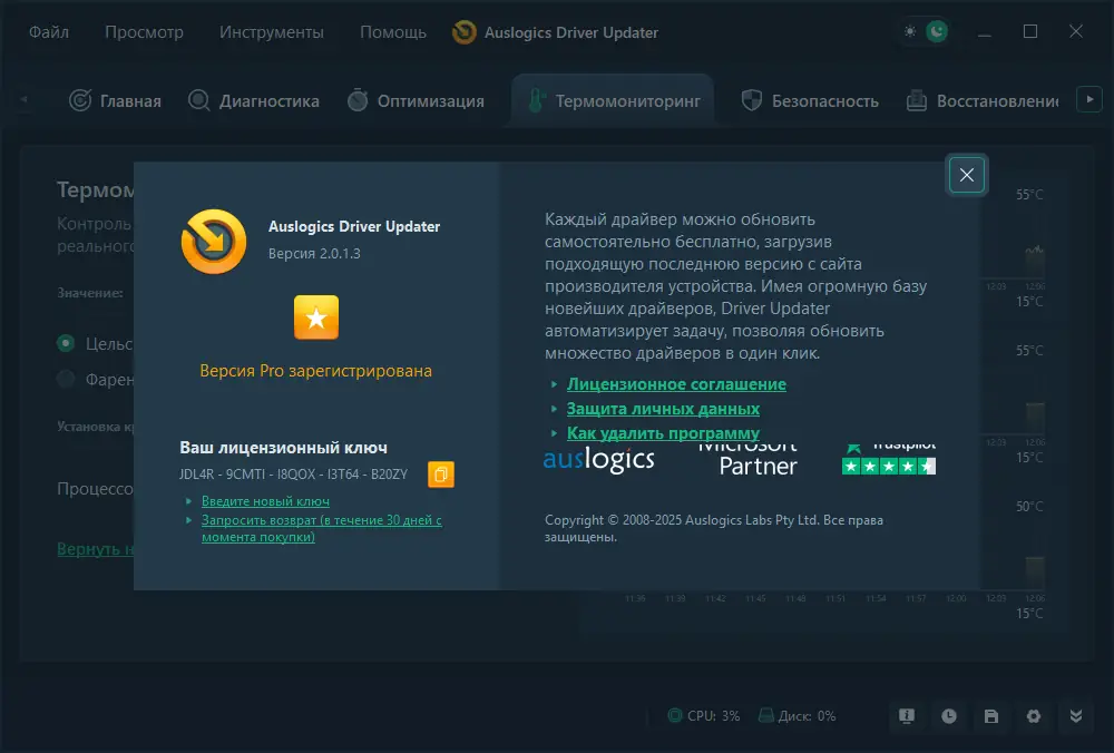 Auslogics Driver Updater — это инструмент для автоматического поиска и обновления драйверов на компьютерах под управлением Windows. Программа сканирует систему, выявляет устаревшие компоненты и предлагает установить актуальные версии с гарантией совместимости и безопасности. Процесс обновления происходит быстро, без необходимости ручного поиска или настройки, что делает утилиту удобной для пользователей любого уровня.