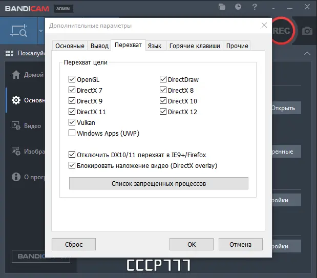 - Запись контента, созданного с использованием DirectX и OpenGL, в форматах AVI и MP4