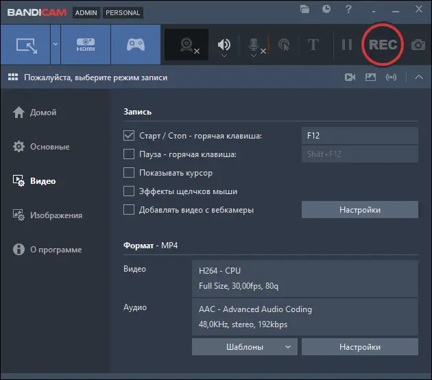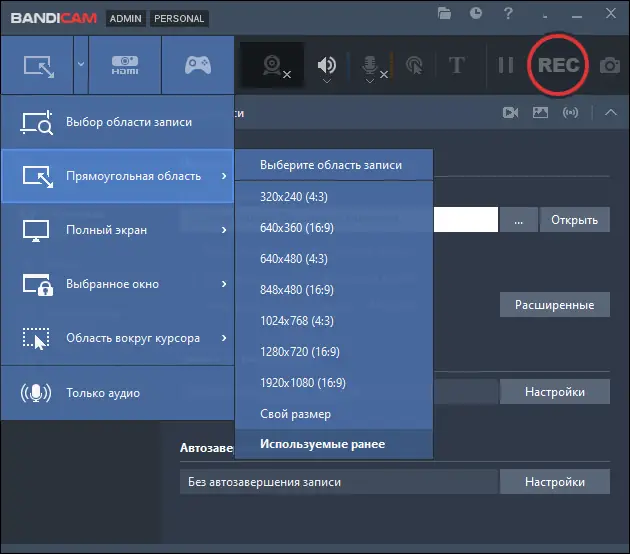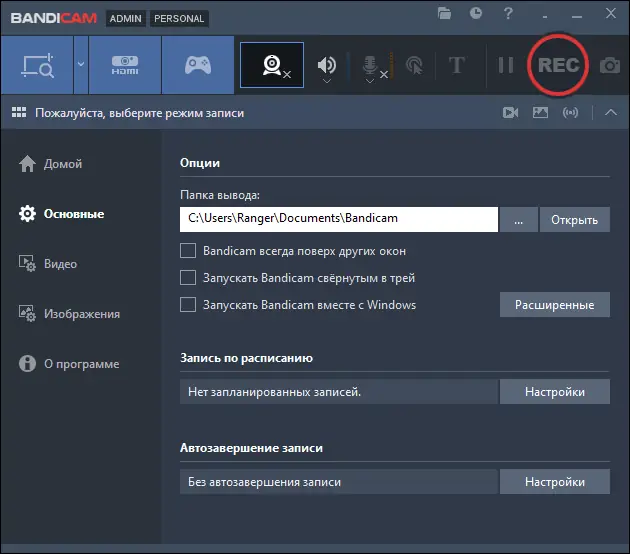Работа с Bandicam