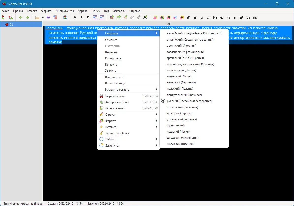 Работа с CherryTree