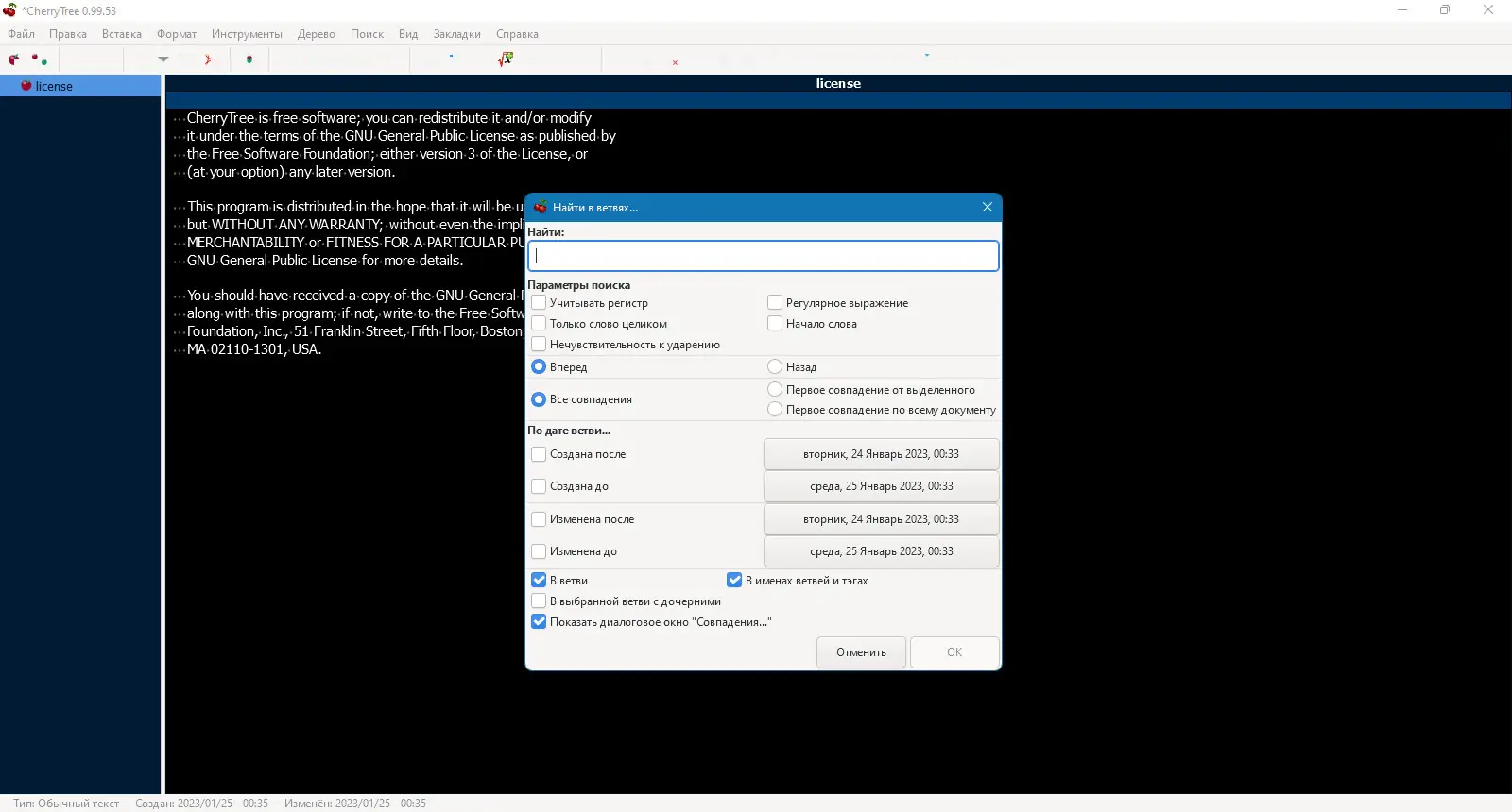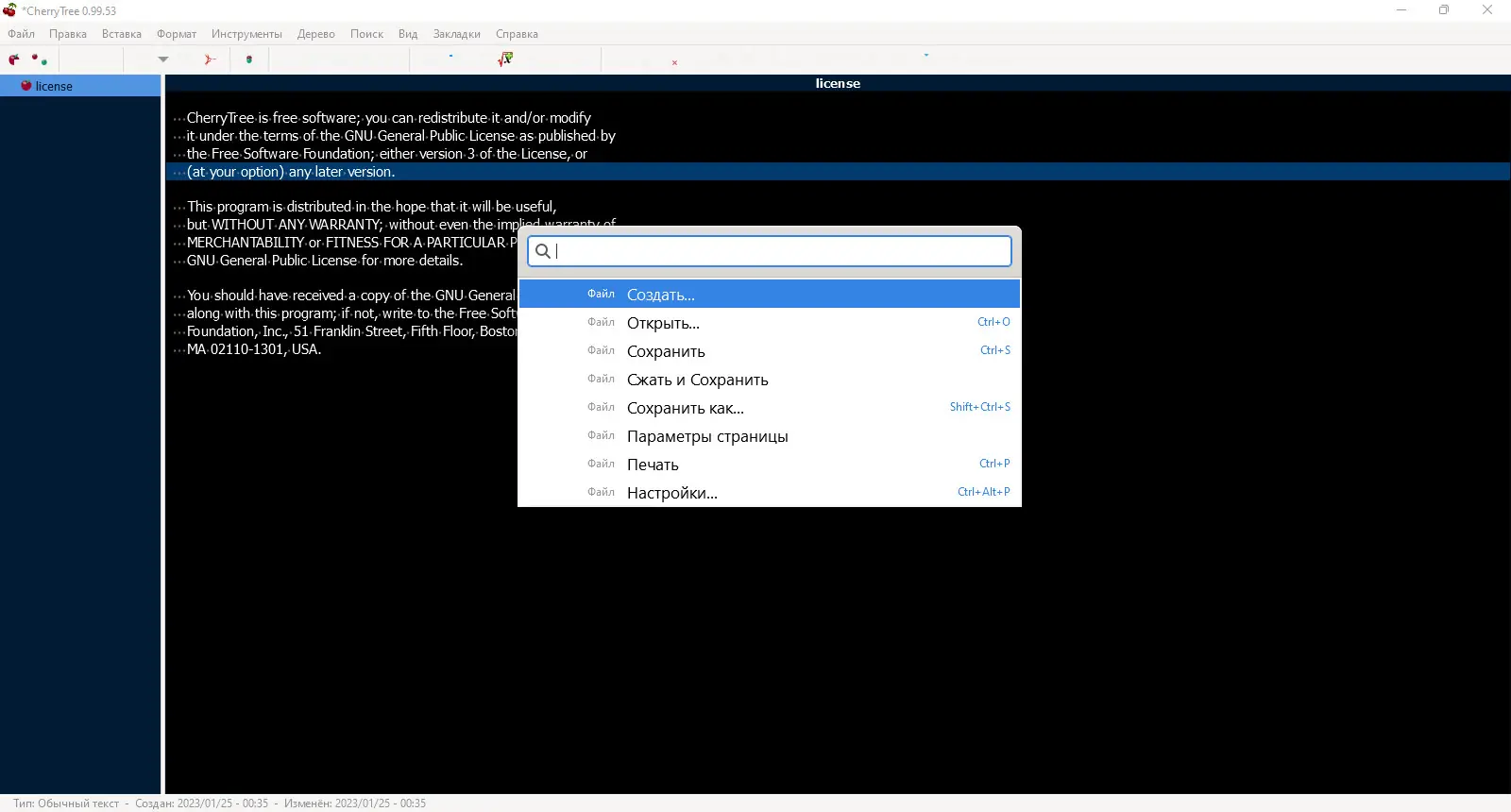 Работа с CherryTree