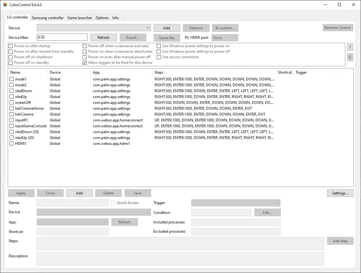 Использование программы начинается с запуска и автоматического определения подключённых дисплеев и видеокарты. В главном окне отображаются все доступные параметры: от яркости и контрастности до продвинутых настроек вроде HDMI Content Type и Extended Colorimetry. Пользователь может создать новый пресет, настроить его под конкретные задачи — например, режим «Кино» с пониженной цветовой температурой и включённым HDR, или «Работа» с высокой чёткостью текста. Каждый профиль сохраняется с уникальным именем, и для него можно назначить сочетание клавиш, действующее в любой момент, даже в полноэкранном приложении. В версии 9.6.4.0 добавлена категория «HDMI Settings», где собраны параметры, влияющие на передачу сигнала по HDMI, включая выбор цветового стандарта и тип контента. Для владельцев мониторов lg реализована поддержка функции Super Resolution, улучшающей чёткость изображения. Все изменения применяются мгновенно, без перезагрузки системы.