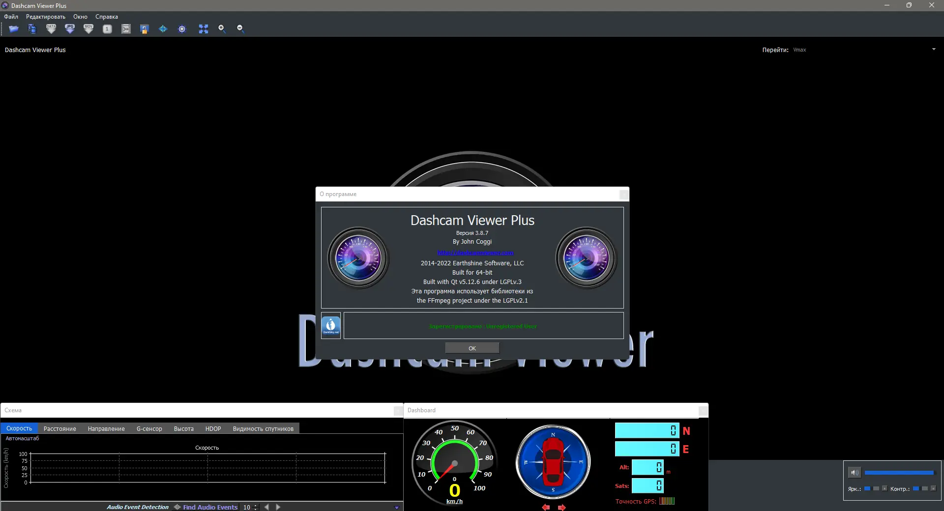 Dashcam Viewer — это специализированный проигрыватель для воспроизведения и анализа видеозаписей с автомобильных регистраторов и экшн-камер, сочетающий в себе функции медиаплеера и трек-анализатора. Программа отображает не только видео, но и синхронизированные данные с GPS-трекеров, датчиков движения и других встроенных сенсоров. Поддержка множества форматов и возможность визуализации маршрута на карте делают её незаменимой для водителей и исследователей видеоданных.