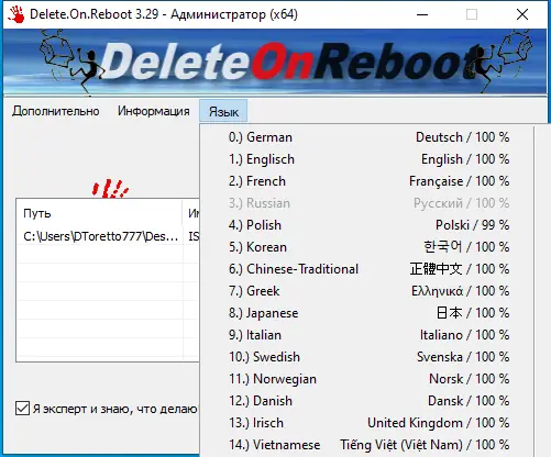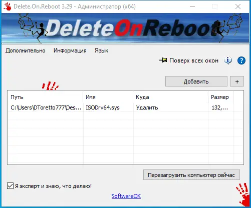 Как пользоваться Delete On Reboot