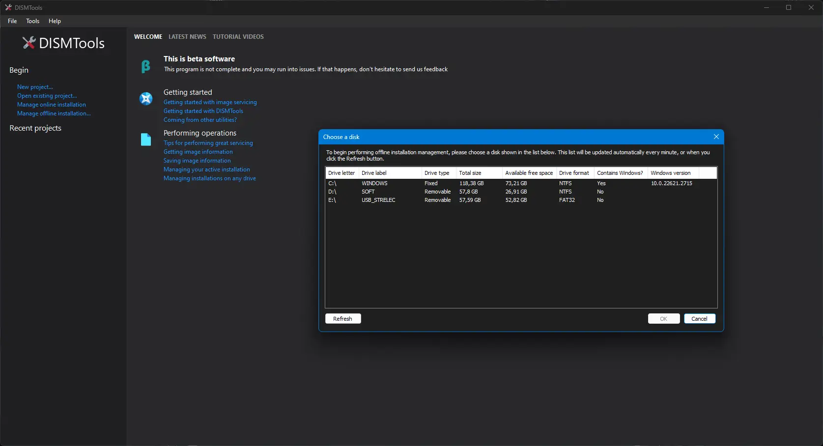 DISMTools сочетает API и исполняемый файл DISM для максимальной совместимости и скорости обработки данных