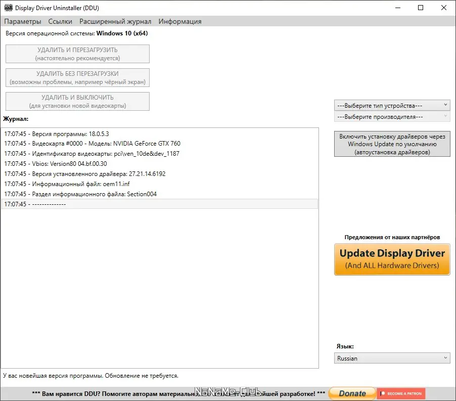 Как пользоваться Display Driver Uninstaller