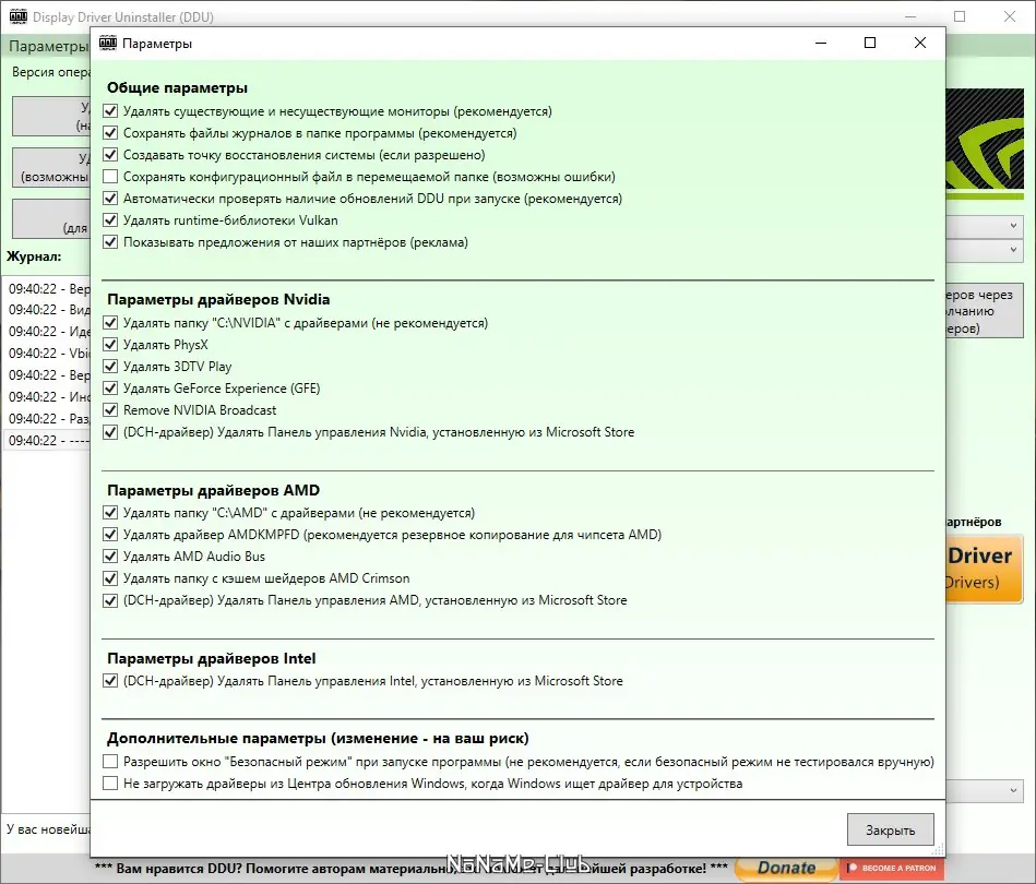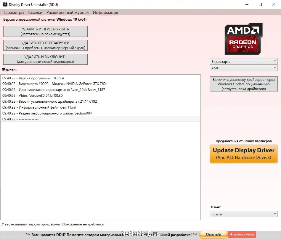Работа с Display Driver Uninstaller