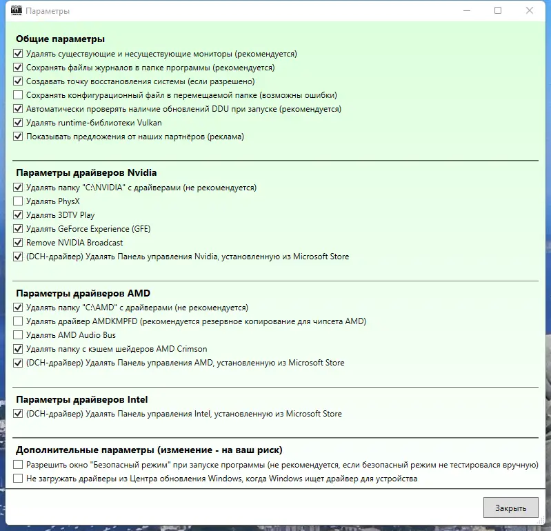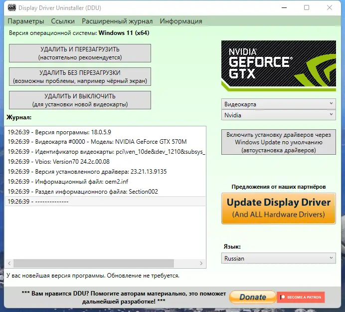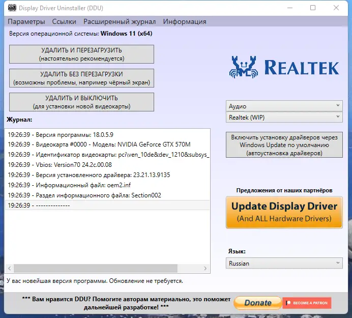 Работа с Display Driver Uninstaller