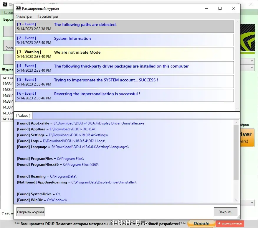 - Поддержка удаления как текущего, так и ранее установленных драйверов.
