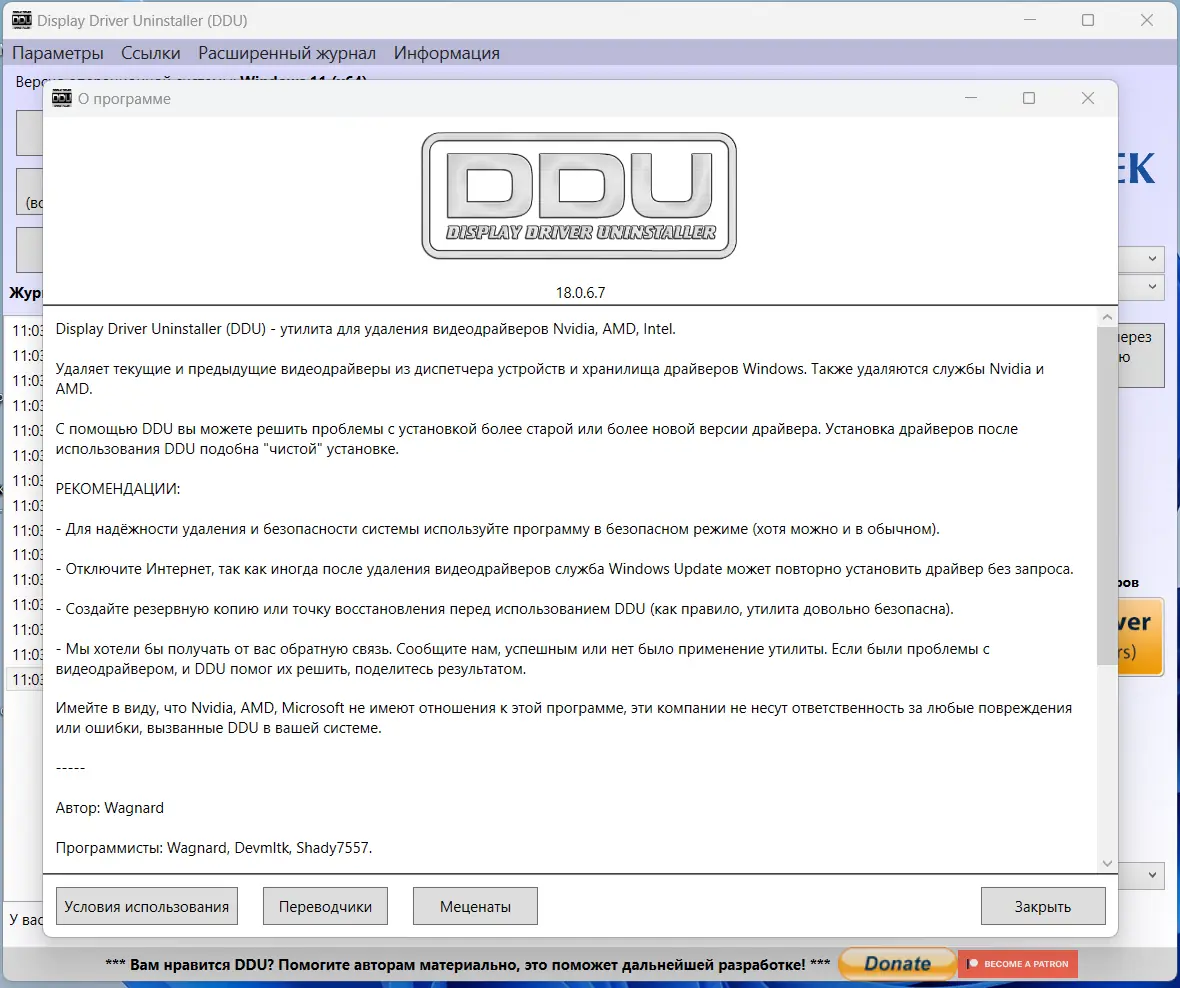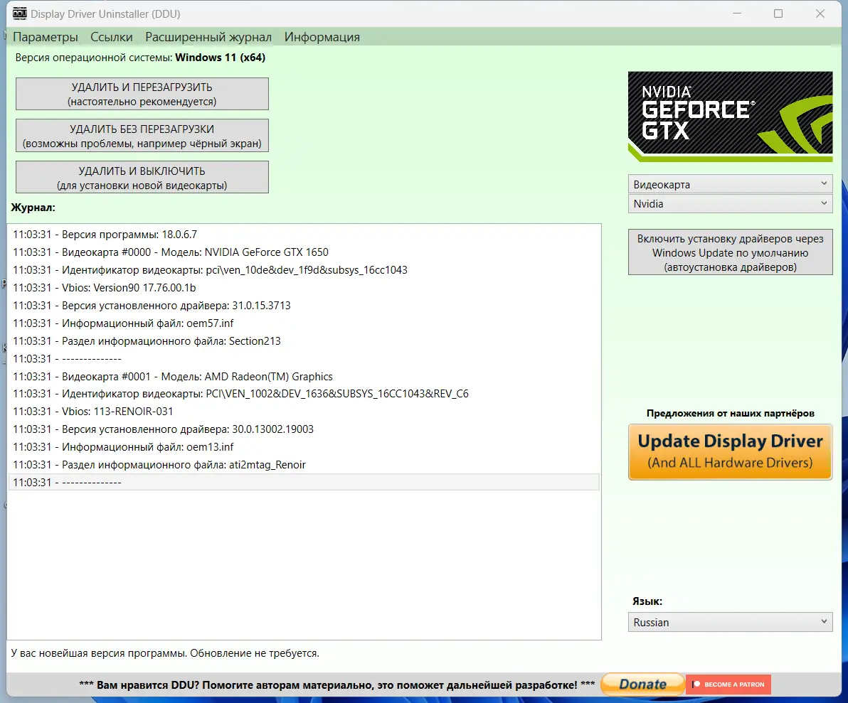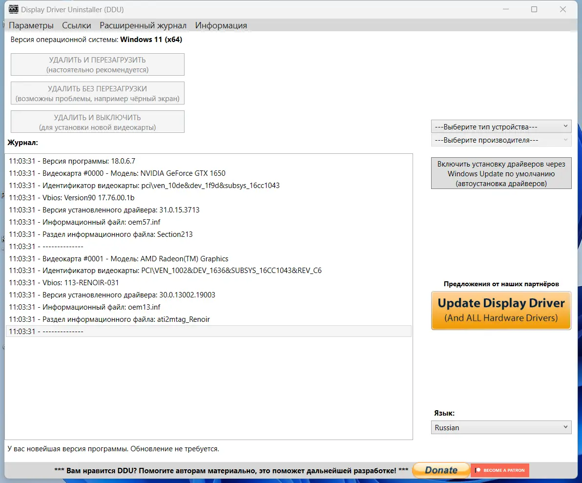 Работа с Display Driver Uninstaller